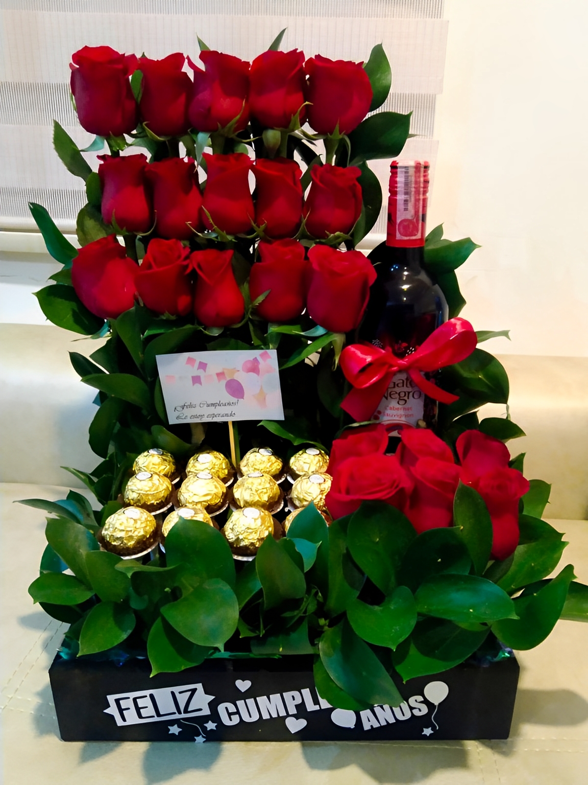 Arreglo Delux con ferrero y vino gato negro R125